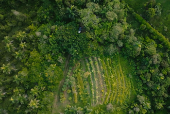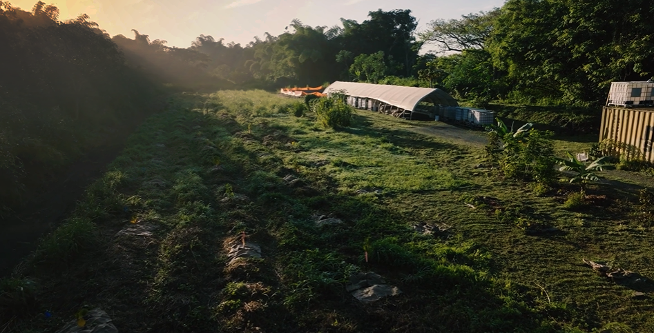 Imagen aérea de un sitio de producción de fermentos vegetales, fermentos de pescado y biocarbón inoculado en Puerto Rico. Imágenes de video de Syntropic Agriculture: An Approach to Building Food and Farm Resilience in Puerto Rico, NCAT.