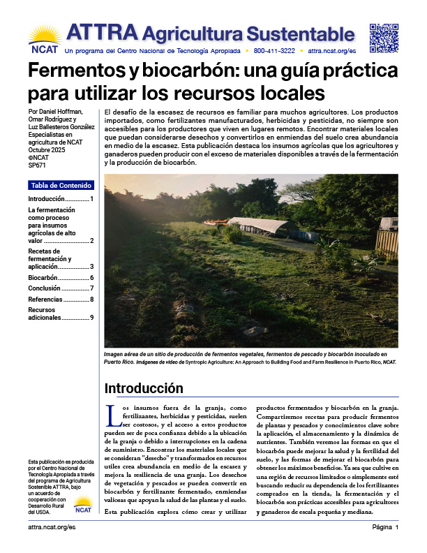El desafío de la escasez de recursos es familiar para muchos agricultores. Los productos importados, como fertilizantes manufacturados, herbicidas y pesticidas, no siempre son accesibles para los productores que viven en lugares remotos. Encontrar materiales locales que puedan considerarse desechos y convertirlos en enmiendas del suelo crea abundancia en medio de la escasez. Esta publicación destaca los insumos agrícolas que los agricultores y ganaderos pueden producir con el exceso de materiales disponibles a través de la fermentación y la producción de biocarbón.
