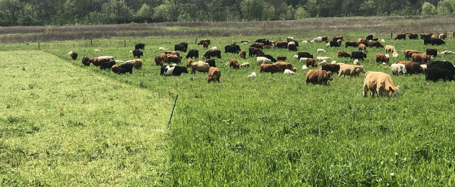 The Ollilas practice mob grazing, running sheep and cattle together. Lambing occurs in late March and early April. Shed lambing allows for close care and high survival, such that they average 170% to 180% lamb crop at turn out. Calving follows in late April and early May. As cows calve, they are moved out to green grass with sheep pairs. From there, cows and ewes with offspring move into weekly 20- to 30-acre rotations emphasizing the “three R’s” of rotation, rest, and recovery. This timing supports balanced grazing pressure and ensures fresh forage.