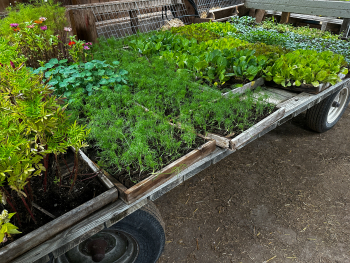 Seedlings ready for transplanting according to succession planting plan. Photo: Darron Gaus, NCAT.
